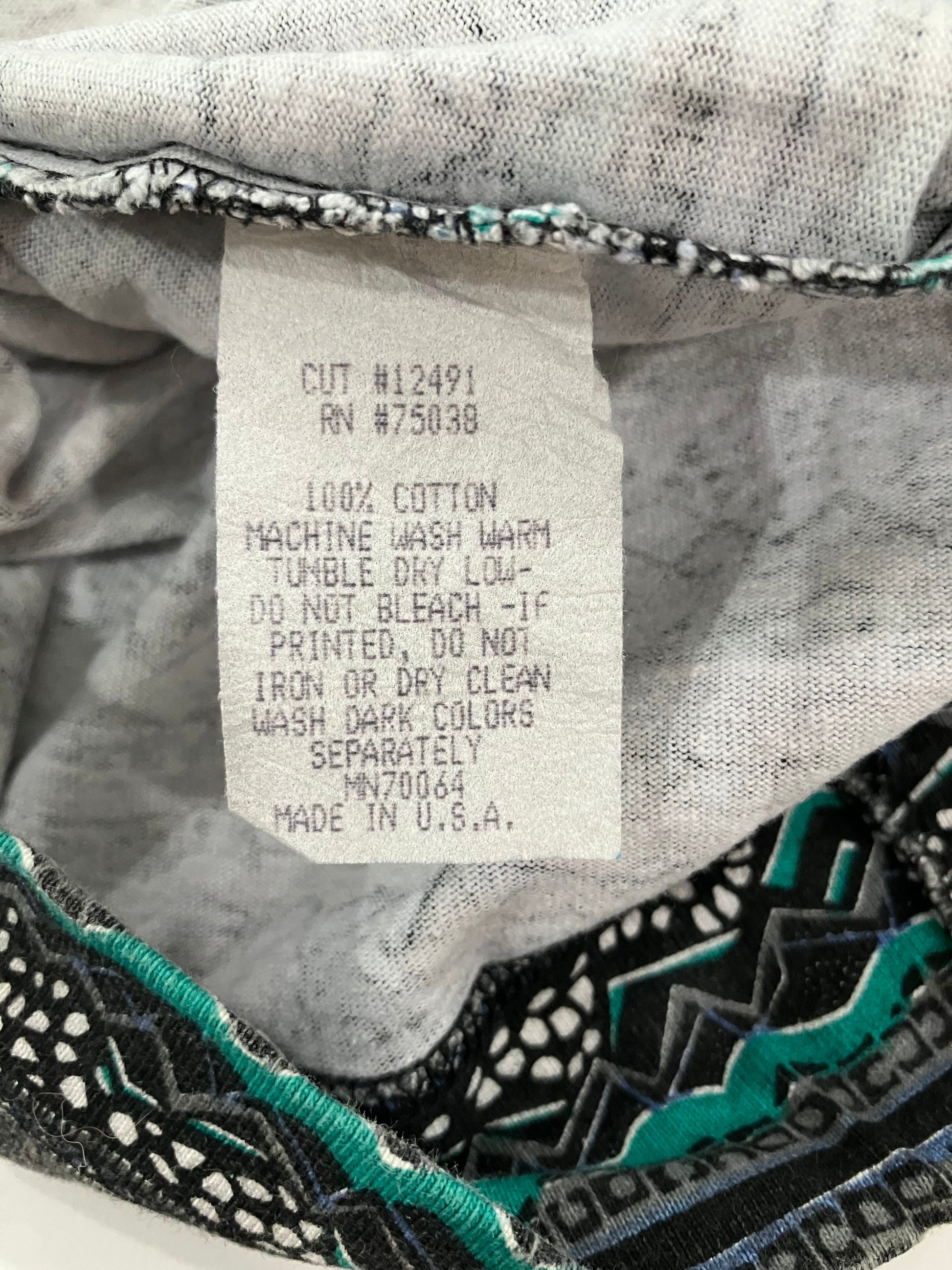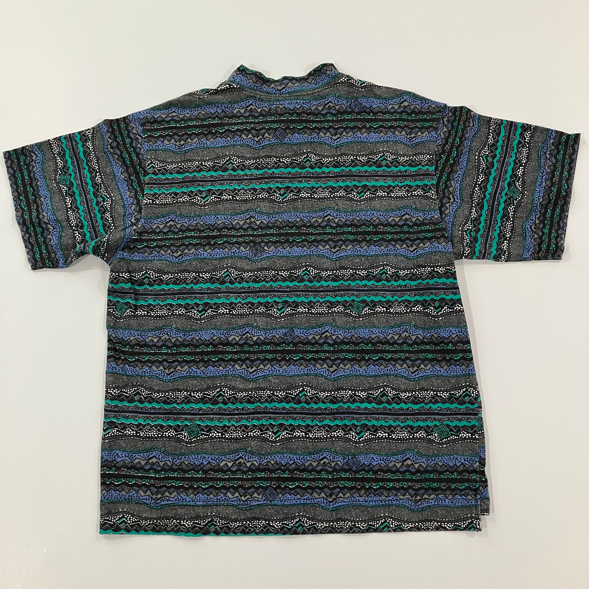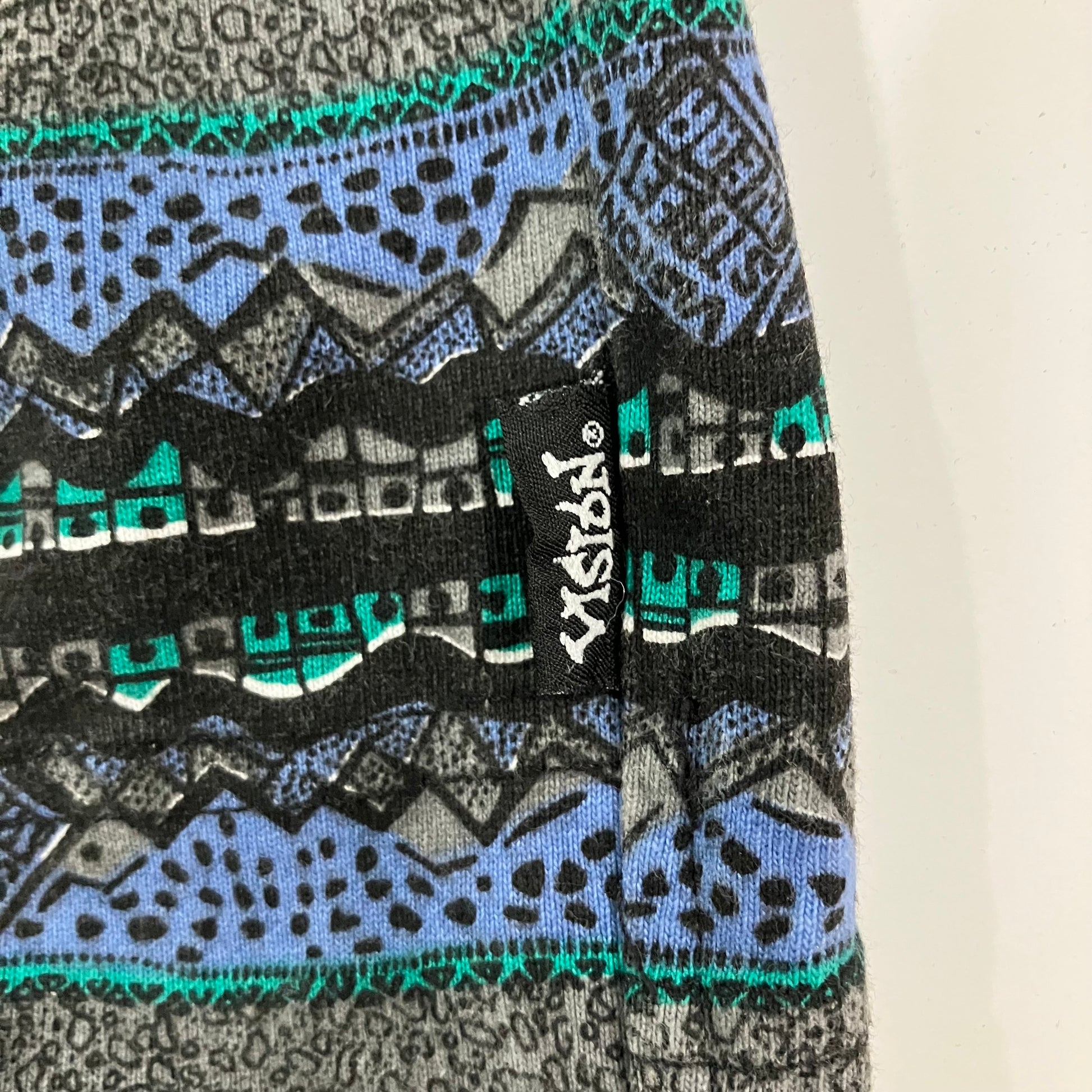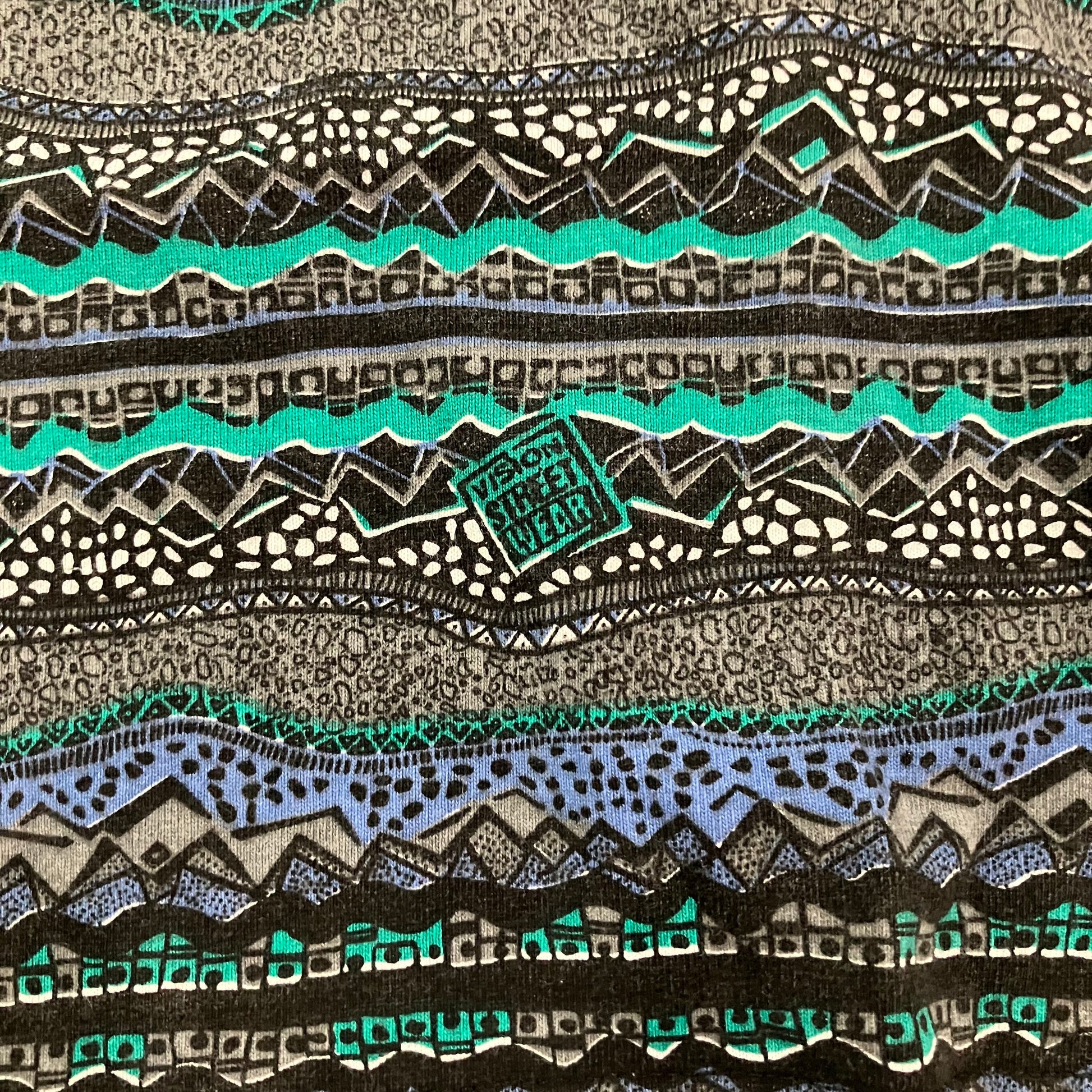 Minty fresh and clean Vision all over abstract stripe print with Vision logos imbedded, waist tag and high crew neck.